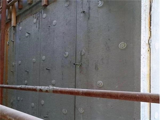 为此,项目部成立专门的课题实施小组,提出利用BIM技术绘制Revit模型,对复合保温板进行统一建模排版、分拆、编号、加工制作,再采用“三合一”技术创新方法开展施工:一是基于3D打印技术,设计了一种带卡槽结构的新型垫块,来控制钢筋混凝土保护层厚度,二是制作加固直板,确保复合保温板阴阳角施工质量,三是采取螺栓孔洞内填充防水砂浆、保温砂浆封堵等措施,不仅增强了墙体的性能,还提高了外墙防渗防漏水性能,共同形成了“FW-Ⅲ复合保温板与模板一体化支设工艺”科研成果。